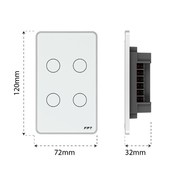 Sản phẩm được thiết kế tương thích với đế âm tường chữ nhật phổ biến tại Việt Nam. Với khả năng thay thế 1:1 cho các công tắc cơ truyền thống, người dùng có thể lắp đặt mà không cần phải đục đẽo tường, hay thay đổi đường dây điện hiện có, giúp tiết kiệm thời gian và chi phí.